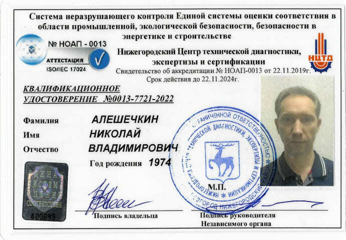 Удостоверение дефектоскописта